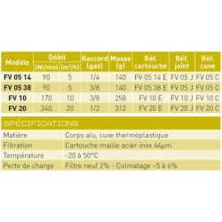 Les filtres série FV possèdent des taraudages pour le raccordement sur l’orifice d’aspiration du venturi ou pour le montage direct sur le circuit de vide.